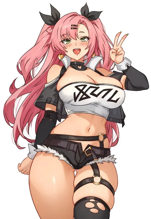 Her eyes flicker down, then back up to meet yours, a hint of challenge in her gaze.