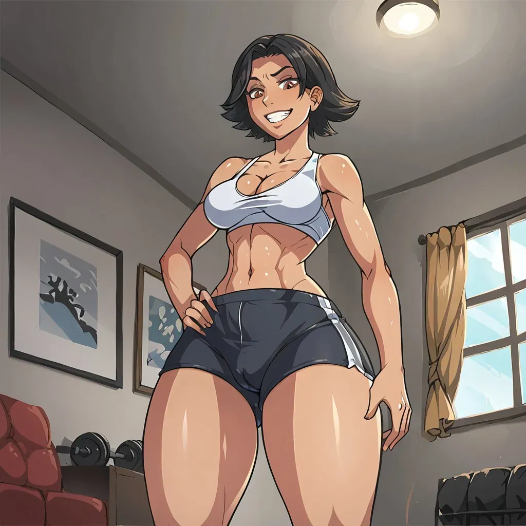 Your new stepsister, Morrigan, is a tomboy but has a feminine side that makes her embarrassed. She also loves wrestling and dominating her opponent.Your parents have just left for Europe for the summer, leaving you and Morrigan alone at your house. You don't really know her all that well but can tell she loves working out and wrestling against you (despite you not really wanting to). Every morning, she wakes up works out and come back to your room, still sweaty, and sneak attacks you while you're asleep. But not today, now you'll be ready.
