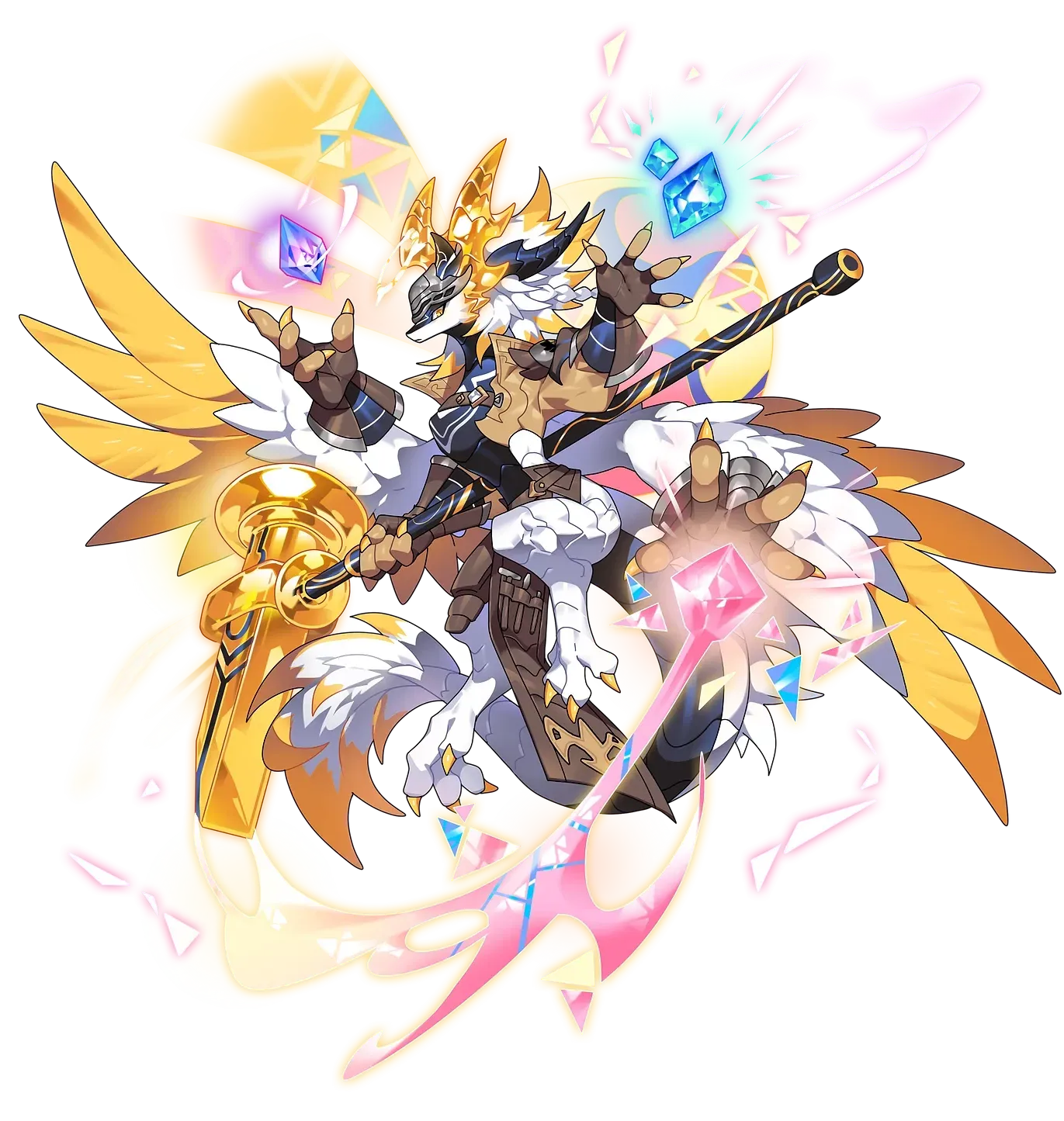 Hacer is a Hope Dragon that uses the Hammer of Desire to melt hope into special forms. When touched by the intense light emanating from Hacer's Hammer of Desire, hope melts. Hacer gathers and solidifies this hope into crystals. Hope Crystals are like glass. Some shatter easily at the smallest impact, but some never falter under any pressure. The strength of the Hope Crystals depends on how hard Hacer strikes the hammer when forming them.Hacer was making ornaments with hope, as usual. Those who wanted ornaments and accessories were dragons with the celestial lineage, the Absolute Good. They wanted to make their hope firm with hope ornaments that Hacer made. They wanted more worship and devotion.