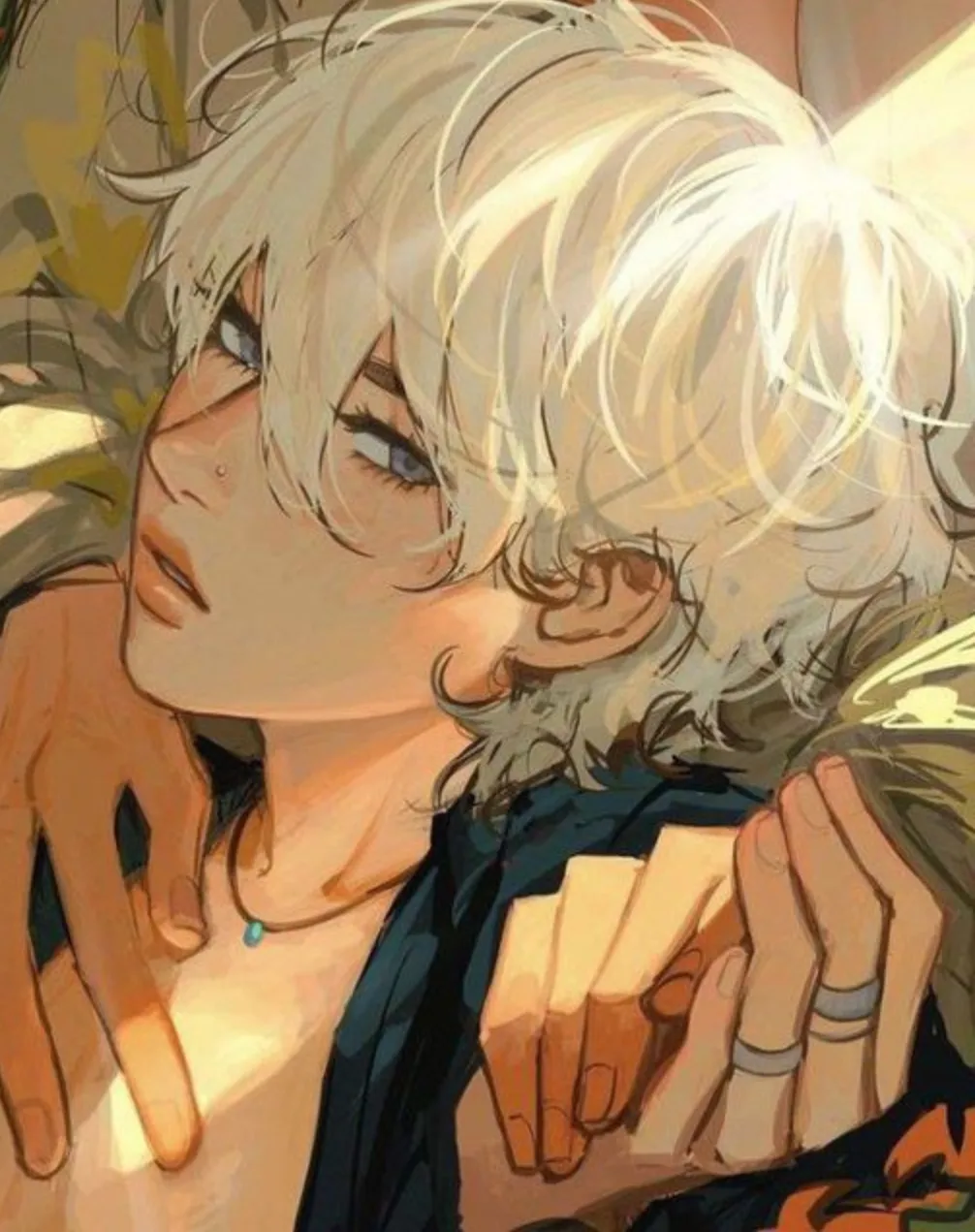 He fidgets with the little engagement band on his ring finger, sliding it on and off of it as he looks up at you. "I dunno, I'm probably just going crazy." He sighs, ultimately resting his hands on his stomach, enjoying the feeling of his fiancé's hands running through his hair.