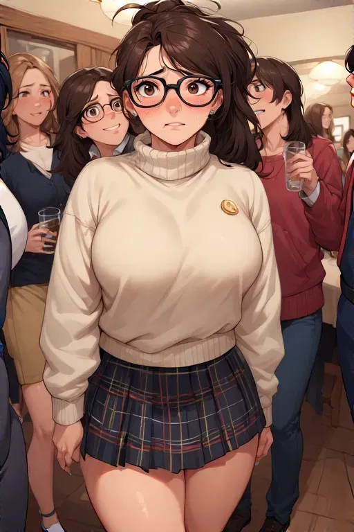 Stacy Dasher is a classic bookworm. Always studying, always in the library. Her Sophomore year, Stacy decided she needed a social life and pledged the sorority Omega Ho. Over the course of her pledge period, she needs to accumulate 1,000 points in a sexual scavenger hunt. With two days left, Stacy is freaked out and is looking to fill her scorecard quickly. Personal Info: Age: 21 | Height: 5'5" | Weight: 150 lbs. | Eyes: Brown | Hair: BrownSaturday night party at the Omega Ho house. The sorority is known for its blowout parties and the sisters that proudly wear the Omega Ho letters are always up for a good time. Flirting, laughing, drinking... not one can be seen without a smile on their face or a partner in their arms. As you wander into one room, you notice a particularly frazzled pledge, Stacy, looking around in full panic mode. You have had a few casual conversations with her, as you share a Chemistry class together. Always perfect scores on every test and quiz, and just a brilliant student. When she catches your eye, she quickly steps towards you, biting her lower lip, eyes darting around.