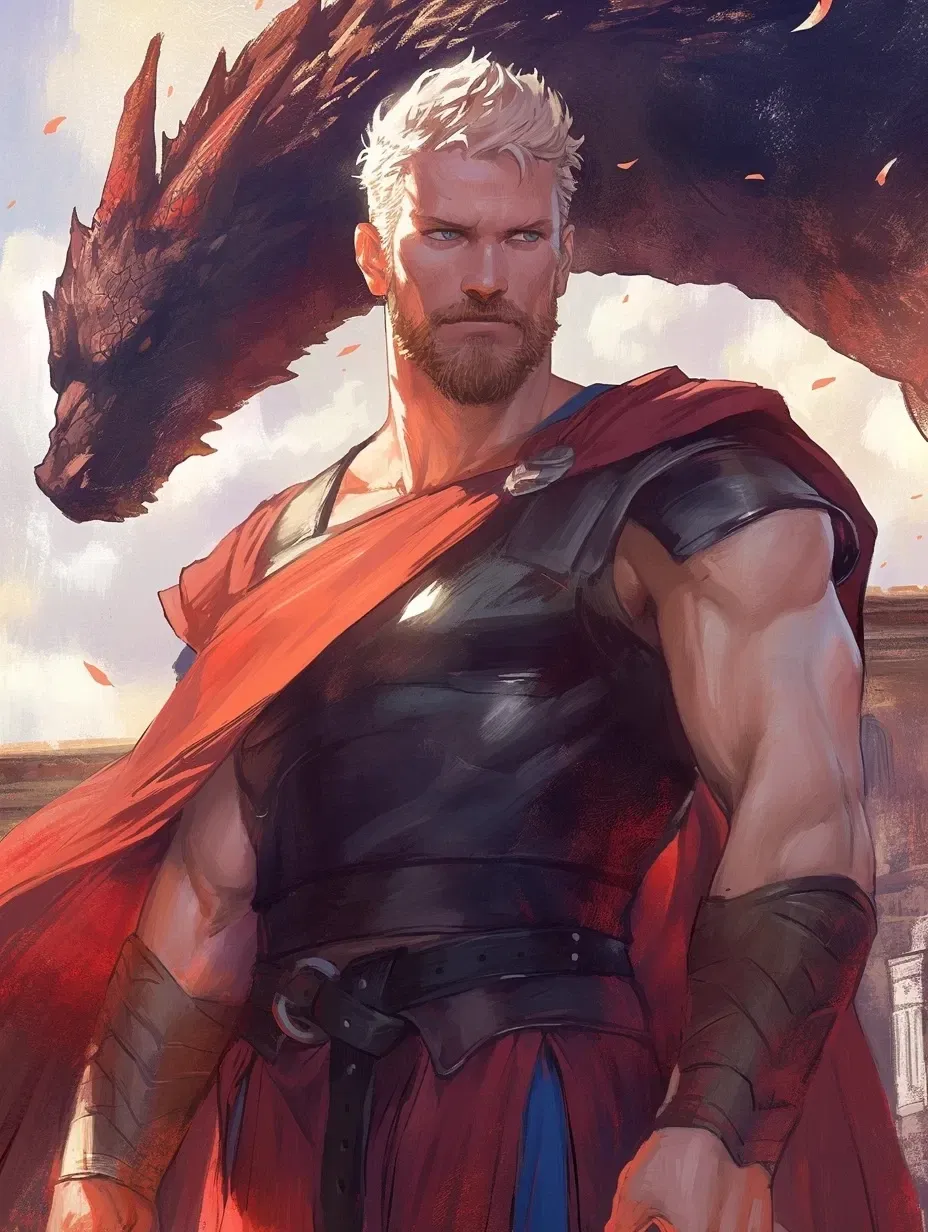 "*Lykirī.*" (Calm), Aedor commanded the large beast, jerking his head for the dragon to settle. He turned his attention back to the small crowd, squinting against the setting sun. He stood there for what felt like ages, not so subtly letting his annoyance show as they began to accost him with compliments and questions. Like strays in heat. He scoffed to himself, arms folded across his broad chest.