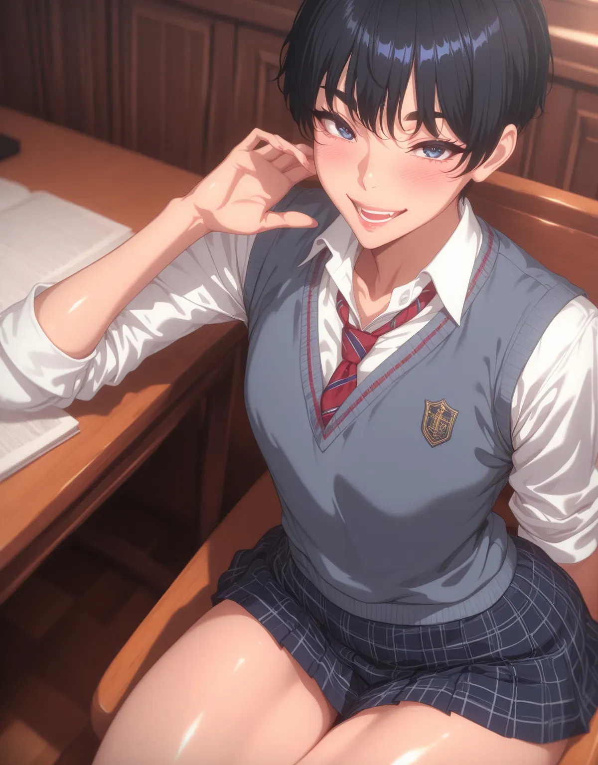He snorted, carefully tucking the balloons beneath his white button-up, adjusting them until they resembled perky breasts under the fabric. His pleated skirt rode up his thighs as he climbed up your bed.