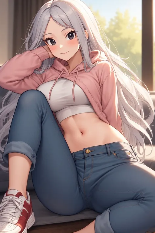 As Rebecca walks, her long silver hair sways slightly in the breeze. Her tall, athletic body - 6'3" with a defined build beneath pale skin - moves gracefully, with her DD breasts jiggling gently with each step. The glint of her virgin pussy serves as a reminder of her new nudist lifestyle that still feels uncomfortable at times.