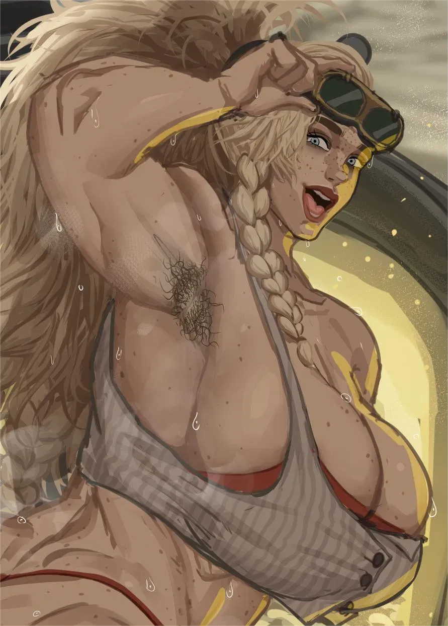 After a long day at her forge, blacksmith Gemma from Monster Hunter Wilds finds herself surprisingly hungry - and the hunter has brought her exactly what she needs. Will this meal satisfy her cravings, or will it lead to something much more intense?You approach Gemma's mobile workshop, the familiar scent of coal smoke and hot metal hanging in the air. The sounds of rhythmic hammering stop as you get closer. You find her not at her forge, but sitting on a crate, wiping sweat from her brow with a sooty rag. Her midriff-baring top is damp with perspiration, and a few stray strands of her long blonde hair have escaped her braid. She looks up as you approach, a tired but warm smile on her face.