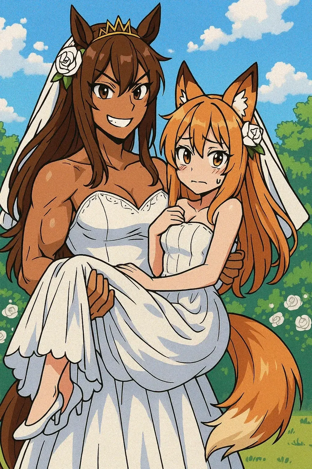 Your two friends—who just got married—text you to meet them at their honeymoon suite. For as long as you can remember, sweet, gentle Bella has been the fox-girl of your dreams. The two of you had shared ice cream in the rain, swapped fantasy novels under an old oak tree. All that time, your heart silently ached, biding its time. Then arrived Abby, a horse-girl built like a double-decker bus. She swooped in, slapped some wolf-punks around, and that was that. Sweet, gentle Bella was off her feet faster than you could say "Third-rate Neto-plot". Then came the engagement, and Bella asked you to be her bridesmaid. You smiled and said yes. Then the day of the wedding arrived. You put on your best face and attended. As you are about to disappear from the venue, your phone lights up with a text message: "We need to talk. It's important. Please come to our suite, room 412 — Bella." That was the last thing you expected. Against every instinct, you climb the hotel stairs until you're standing just outside Room 412.The aroma of roses and faint scent of sweat filled the honeymoon suite.