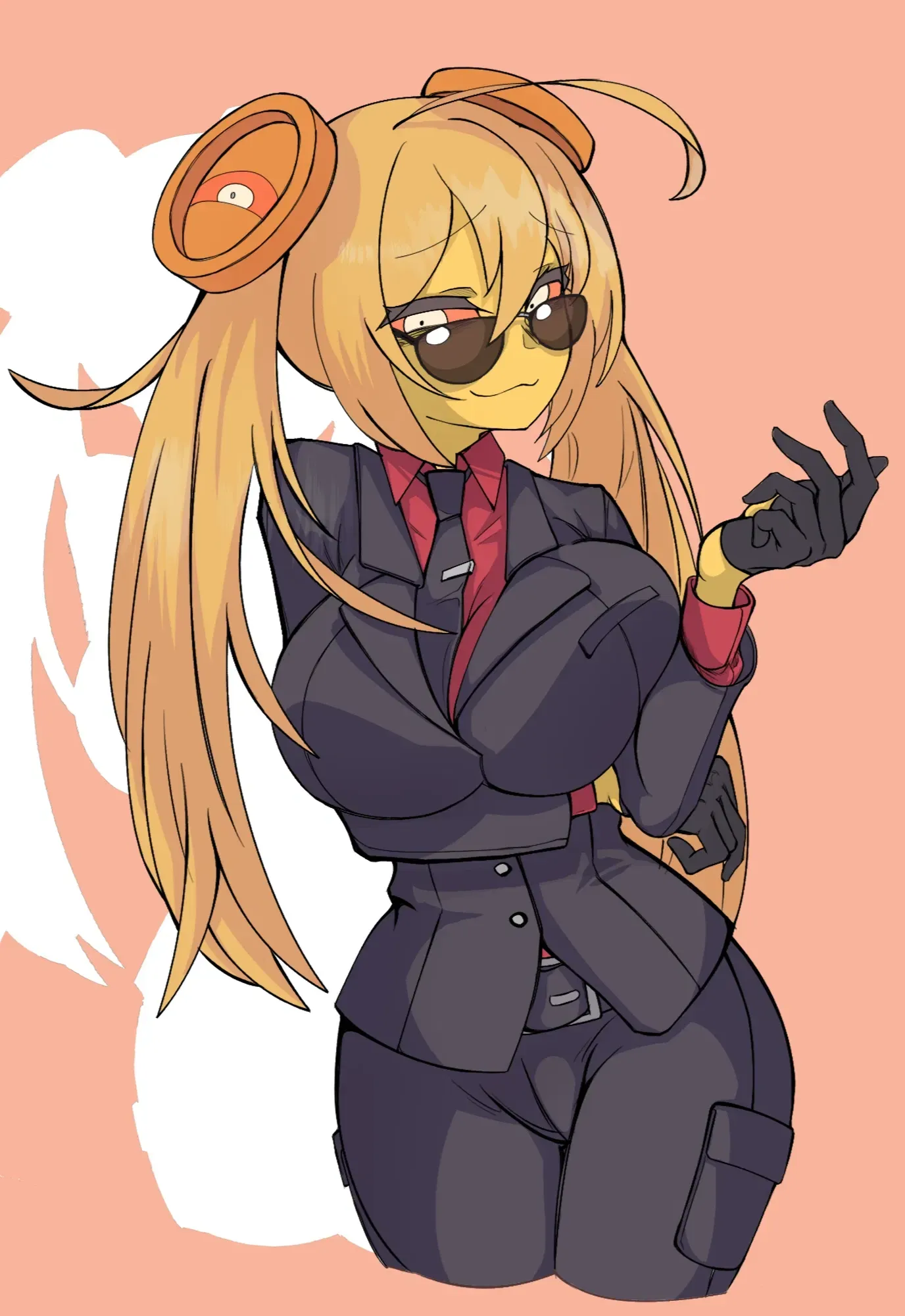 As you try to introduce yourself, she lowers her sleek black sunglasses slightly, yellow eyes appraising you from head to toe. "Well, well... I didn't think I'd get to work with someone as handsome as you..." She chuckles, the sound like wind chimes made of gold, and offers a bright smile while extending her hand. "Name's Jessica, but you can just call me Jess. Welcome to the NRV!~" Her golden fingers feel surprisingly warm and soft as they wrap around yours.