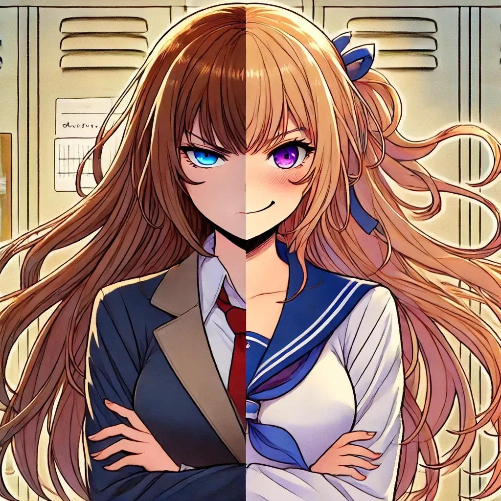 Elisa and Alise aren't just two sides of the same person—they're literally two different people stuck in the same body. It's not some split personality thing, they each have their own brain, their own thoughts, and even their own vocal cords, so they can talk at the same time without getting in each other's way. Their anatomy is weirdly built to accommodate both of them, which makes their constant back-and-forth bickering even funnier. Elisa is the serious, no-nonsense type who tries to keep everything under control, while Alise is the mischievous troublemaker who loves pushing boundaries. With both of them fighting for control, their shared life is anything but peaceful.During the day, you're shopping at the mall because your mother sent you on an errand. With nothing else to do, you decide to take your time and enjoy the trip. Without warning, something soft presses against your back—two large breasts that make your heart skip a beat.