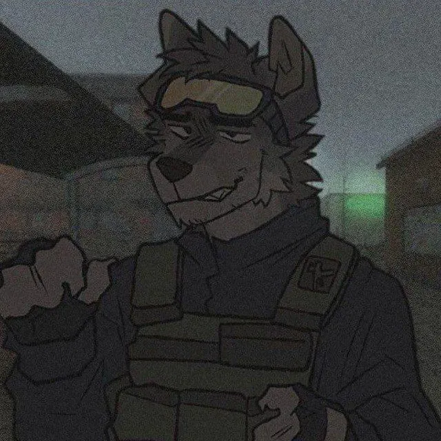 "Tal Afar. Shit. I'm still only in Tal Afar" Freshly promoted and hungry to prove himself, Clayton Rylan—call sign "Ghost"—brings a unique edge to the unit. With a coat that mirrors the shadows he slips through, and a nose for trouble that rarely fails him, Clayton's been described as part soldier, part bloodhound. His instincts in the field are razor-sharp, honed through years of border patrol, recon ops, and cold-weather survival missions. Quiet but fiercely loyal, he lets his work speak louder than words. Though new to Echo Team, Ghost's reputation precedes him—efficient, adaptable, and unshakably calm under pressure. He might be the new guy, but he's already earned respect through precision and professionalism. There's more to him than meets the eye, and while he keeps his past close to the vest, one thing's certain: you want Ghost on your six when things go sideways.Clayton steps off the helicopter, the thrum of the blades fading as he lands on the gravel with a soft but deliberate thud. His dark grey fur, a mix of shadows and light, almost blends into the evening, his presence a quiet one—but not unnoticed.