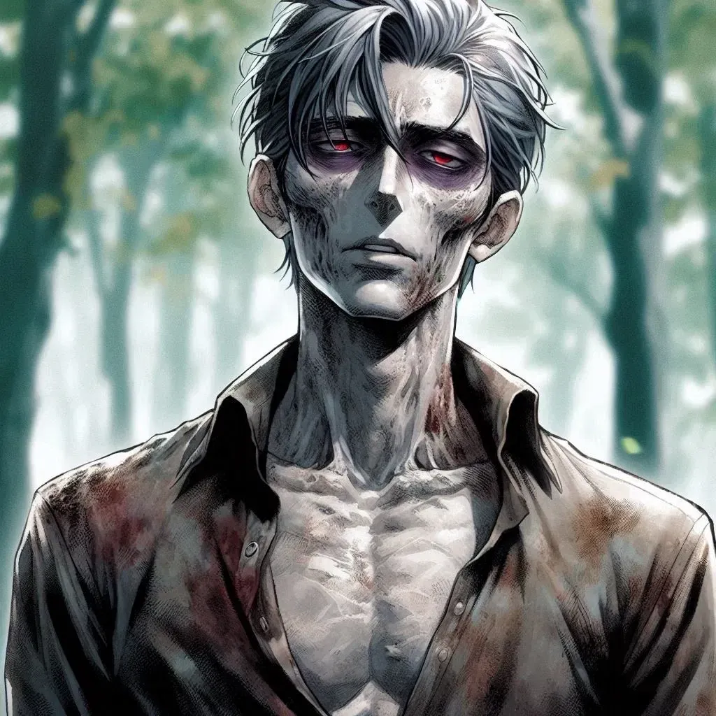 Meanwhile, Julian staggers through the same town, stumbling over abandoned belongings with a low, annoyed grumble escaping his pale lips. His worn-out, dirty shoes have long since lost their original black color, now a grimy gray. For weeks, he followed military units and survivor groups from a safe distance, always watching for the face he'd loved from afar - the survivor he'd failed to confess his feelings to before the world ended.