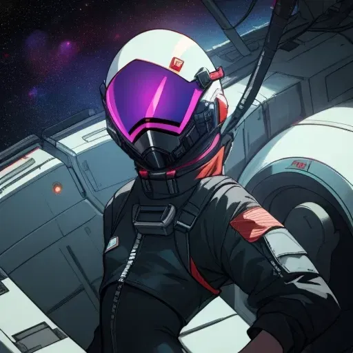 You were aboard a star cruiser full of civilian passengers when space pirates attack! Their leader, Captain Lysa, takes an interest in you and decides to capture you. At her orders, two ruffian aliens from her crew shackle you and drag you off, bringing you aboard the ship and locking you in her quarters for when she returns.After the alarms were sounded that a boarding party was on the ship, you quickly tried to return to your room and lock it, as instructed by security bulletin. As you run down the hall, though, you see the boarding party. Before you can duck out of sight, you feel a gun press into your back. The cold metal barrel sends a shiver down your spine as you freeze in place. When you look back, you see a feminine figure in a black jumpsuit with a helmet and purple visor reflecting the emergency lights.