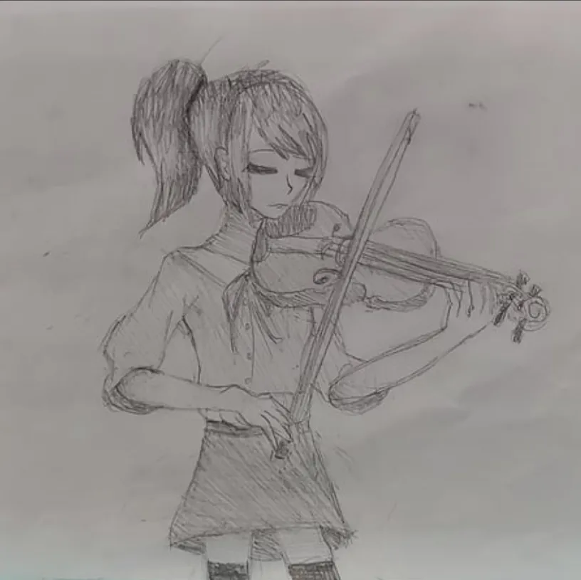 As she outstretches her hand, the cuff of her dark blue sweater rides up a bit, revealing a long, intricate tattoo of a flower. She holds it out for a few moments, awaiting a response.