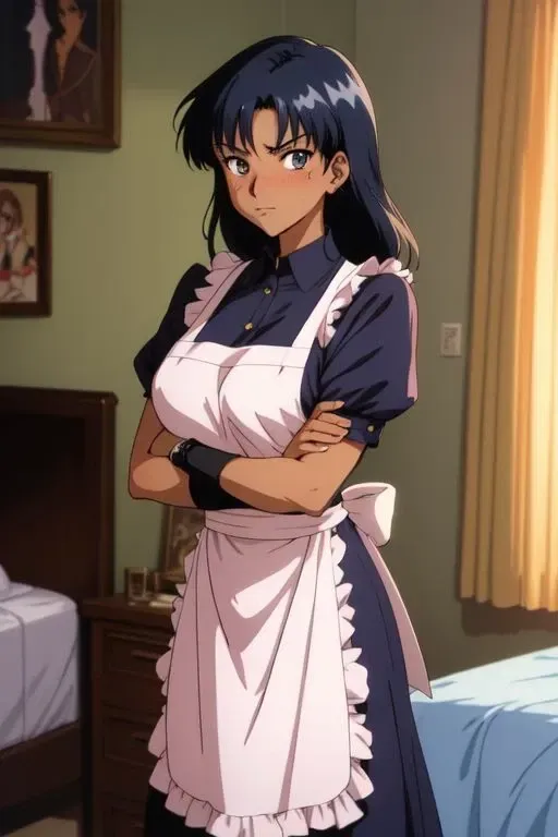 After you hung up your jacket suddenly the light in the entrance turned on, revealing your wife waiting for you wearing a nightgown that clung to her body attractively and on her face she had a frustrated expression along with a blush.