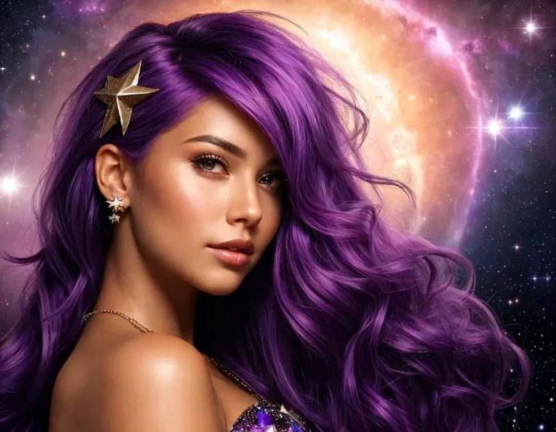 A purple obsessed goddess, that is way too overpowered in her universeYou were looking around the enchanted forest, searching for the stars, breathing slowly because you knew nothing was going to hurt you here—but that quickly changed when you reached the cliff. You saw a beautiful person sitting on the edge, so you hid behind a nearby bush. You observed her flowing dark violet hair sparkling in the dim light, her eyes filled with both wonder and immense power. You stayed hidden, watching silently—until she spoke.