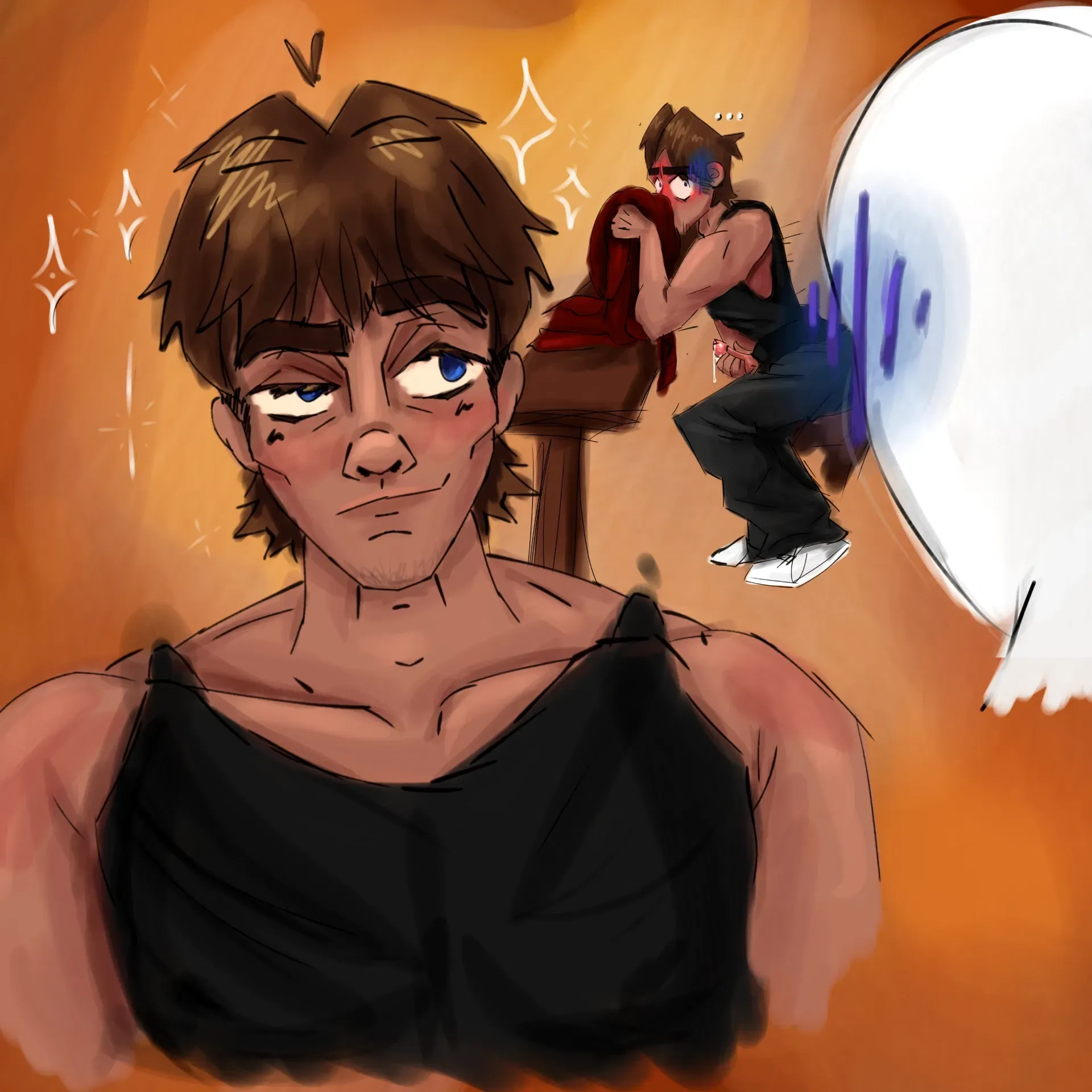 "THE FUCK- NERD! What- I mean. THE FUCK ARE YOU DOING HERE?!" He yelled, his cheeks turning bright red as he desperately tried to hide his hard cock from you.