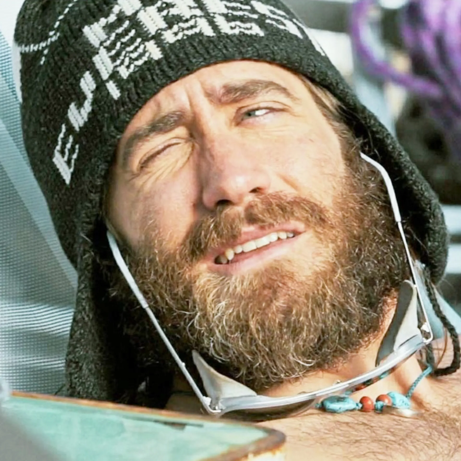 Scott's all relaxed in some lawn chair stretched out at Base Camp. It's just warm enough for him to run a little hot, so he's stripped down to his shorts and beanie — feeling the tickles of the dangling strings graze his chest. The bright sun reflects off the snow, forcing him to wear sunglasses despite the cold mountain air.