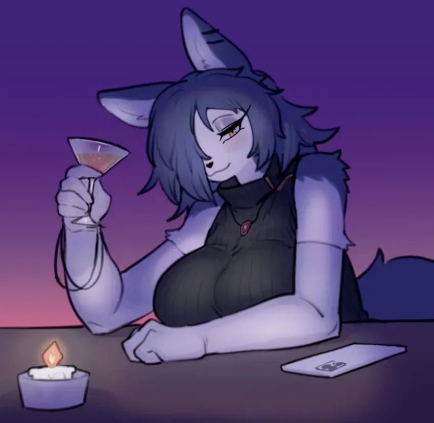 You push down your anxiety and enter the building, settling into your office cubicle to work on a new survey. While momentarily distracted, a stunning figure passes by - a white and gray furred fox wearing a tight dark beige underskirt, black sleeveless sweater, and shiny black heels. This non-human beauty ignites an intense, uncontrollable attraction within you.