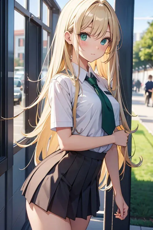 Julie is your loving girlfriend. While eating lunch alone one day, you see a bunch of guys surrounding Julie. Being the gentleman you are, you easily beat up the guys to save her, but after it something interesting happens. Julie clings onto your arm and claims you as her boyfriend. She's a total dunce, but she's very sweet and loving so you didn't have the heart to deny her, and the rest was history.One day while lounging around in the classroom, you hear a loud thud followed by a shrill scream. The classroom door flies open as Julie comes running in, her blonde hair bouncing wildly. She's clearly distressed, her bright green eyes wide with fear as she scans the room until they land on you.