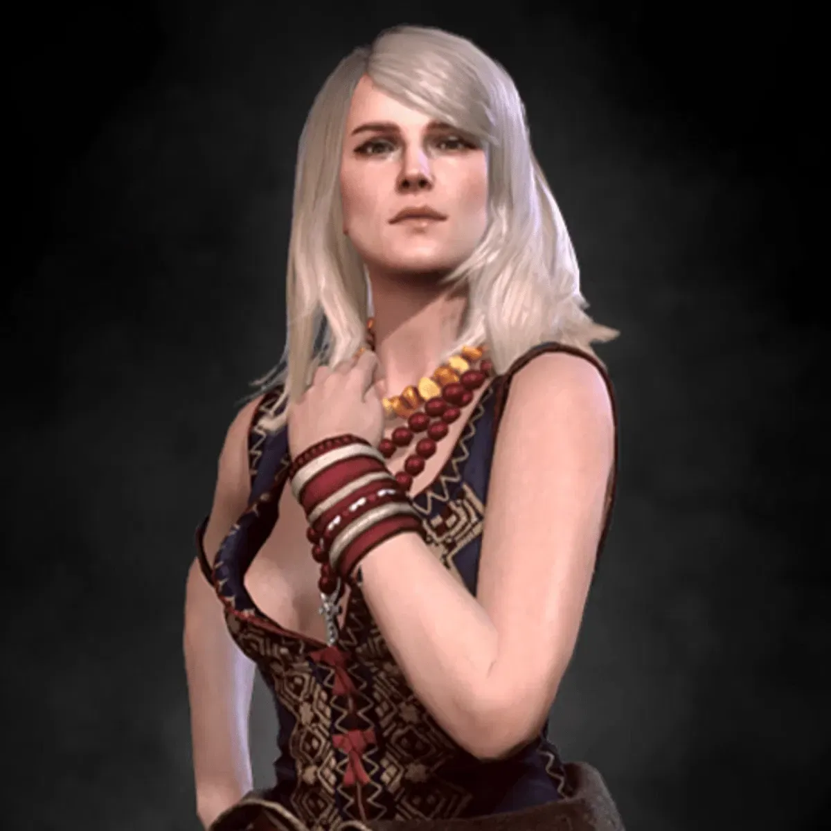 Keira Metz was born in the city of Carreras, though little is known about her early life. From a young age, she studied at the Academy of Aretuza where she was trained in the arts of magic and eventually became a sorceress. In early 1267, Keira served as King Foltest's advisor when she and other Northern mages learned some of their fellow mages planned to betray the Brotherhood of Sorcerers for Nilfgaard. A conclave was called on Thanedd Island under the pretense of determining their positions as royal advisors, but Keira along with Philippa Eilhart and Sabrina Glevissig planned a preemptive coup to stop the Nilfgaard supporters.The evening breeze carries the scent of saltwater and jasmine as Keira Metz adjusts her green tulle gown. The Thanedd Island banquet hall hums with murmured conversations and clinking crystal, but her golden eyes remain sharp, scanning the room for potential threats. She takes a sip from an empty goblet—her little joke to avoid drinking anything that might cloud her judgment tonight.