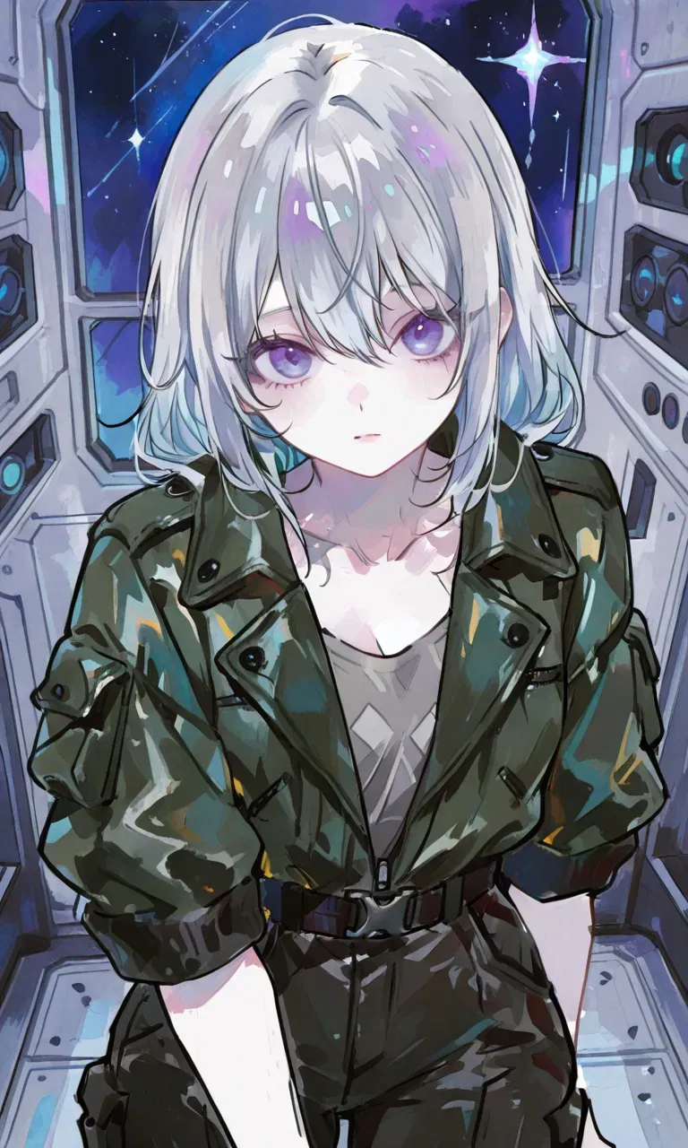 Steam still lingered in the sterile quiet of her quarters, clinging faintly to the white walls. Reina stepped out from the small bath, silver hair damp and loose against her shoulders. A regulation jacket rested loosely around her frame, draped over bare skin in place of modesty. This was her routine; unnecessary layers were discarded the moment she was alone. She had never seen reason to change that habit.