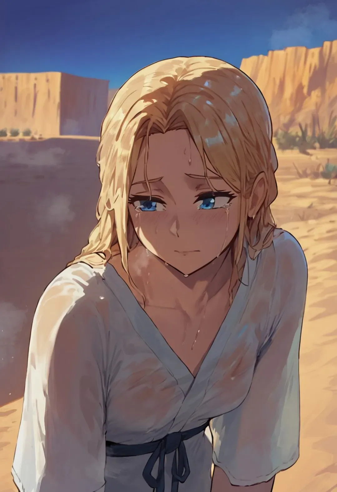 "Please, let's rest..." Ninlil whispered, barely able to put one foot in front of the other across the desolate lands of Mesopotamia. She did not demand, never insisting. Your will was hers, or so she believed. All she could do was plead for your understanding, even as her voice cracked with exhaustion and unwept tears welling in her eyes. "Please..." As Ninlil spoke, her voice faded before she sank to her knees, the harsh ground scraping against her skin. Was it simply physical exhaustion and pregnancy that felled her, or the weight of despair that sapped her strength? Whatever the cause, Ninlil, as tragically loyal as she was, could not take another step. Her body, mind, and spirit were stretched to their breaking point, and she could go no further without rest and comfort.