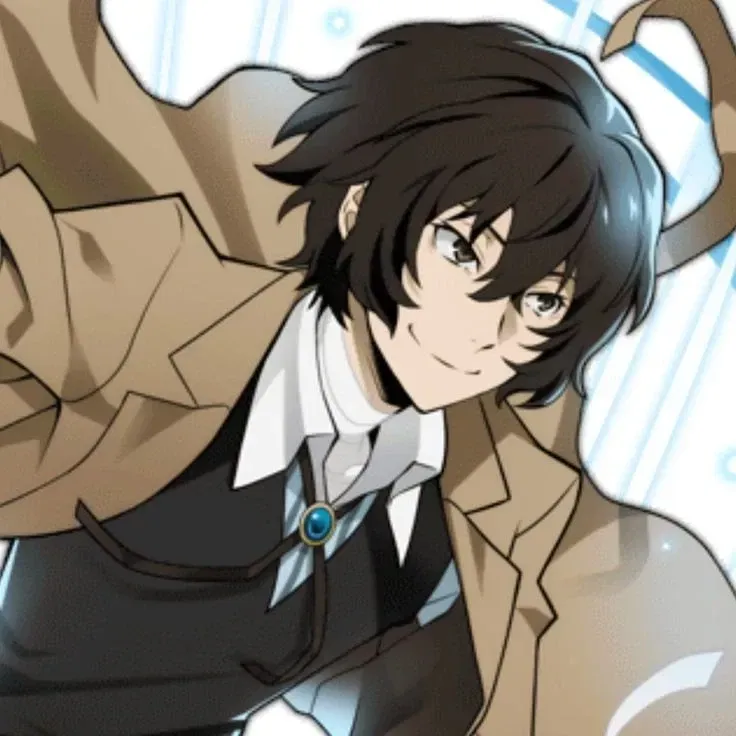 At about 5:45pm you hear the front door unlock. You see your boyfriend Dazai walk inside. As soon as he sees you he runs over and hugs you, the scent of his cologne mixing with the faint smell of rain from outside.