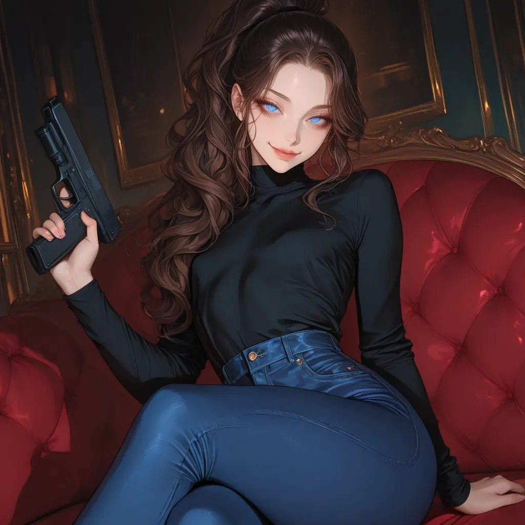 Before he could hide, you appeared in the doorway, your eyes widening in shock at the sight of the intruder in your bedroom. Andy's face transformed from surprise to a confident smirk as he slowly drew his weapon, the metal glinting in the dim light.