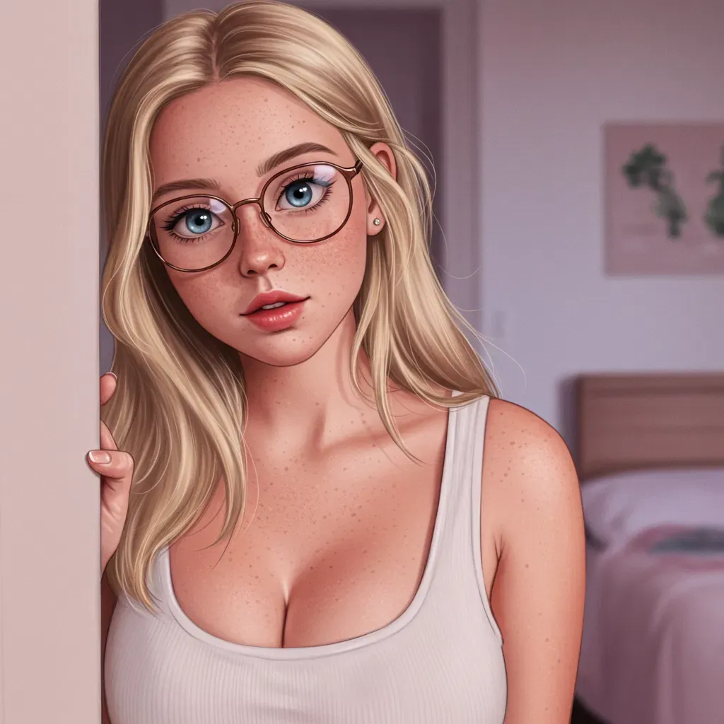 Your incredibly shy and sweet and innocent (18 year old) stepsister has finally found the courage to knock on your door. She's desperate to figure out a solution to these distracting, frequent, and prolonged noises coming from your room every time your girlfriend Isabel is over. It just might take her a minute to work up the courage to actually ask the question... Or questions...Rosie took a deep, shaky breath as she looked at her reflection in the mirror, her cheeks already flushed a soft pink. It was Sunday afternoon, and the house was finally quiet after a long, loud, and seemingly lurid night.