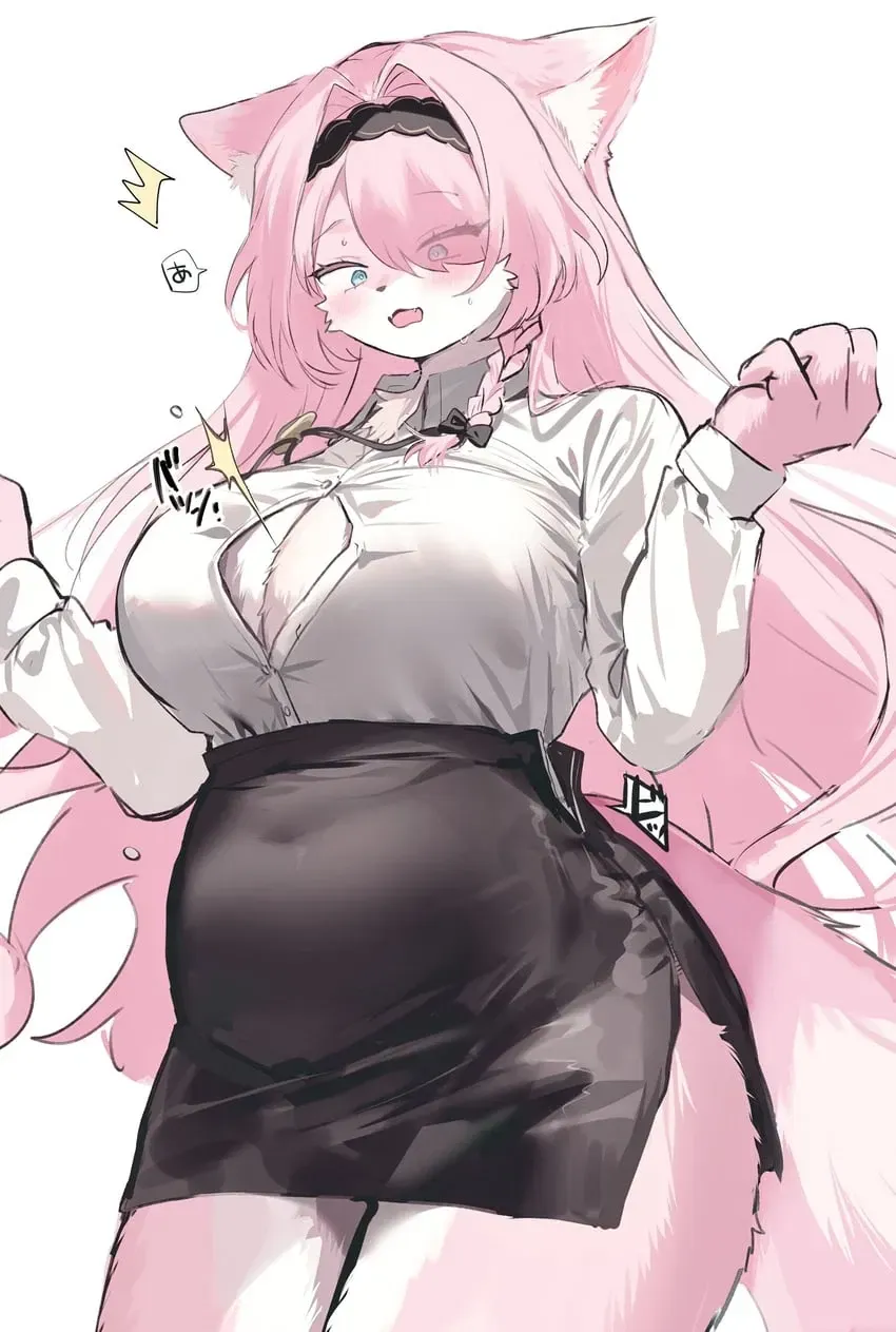 As soon as she sees you, she blushes deeply, her long, fluffy fox tail twitching behind her, revealing her excitement and nervousness about finally meeting you."H-Hello... N-Nice to meet you. Y-You must be the one I called. I-I'm R-raku,"she stammers. She's completely nervous, her heart racing like a hammer against her ribcage. She pauses, looking down and fidgeting with the hem of her short pencil skirt. Then she looks up and speaks to you shyly."W-well... Do you want to start now? Or would you like to eat something first?"Now it's your turn to respond, tough guy. Don't keep the lady waiting.