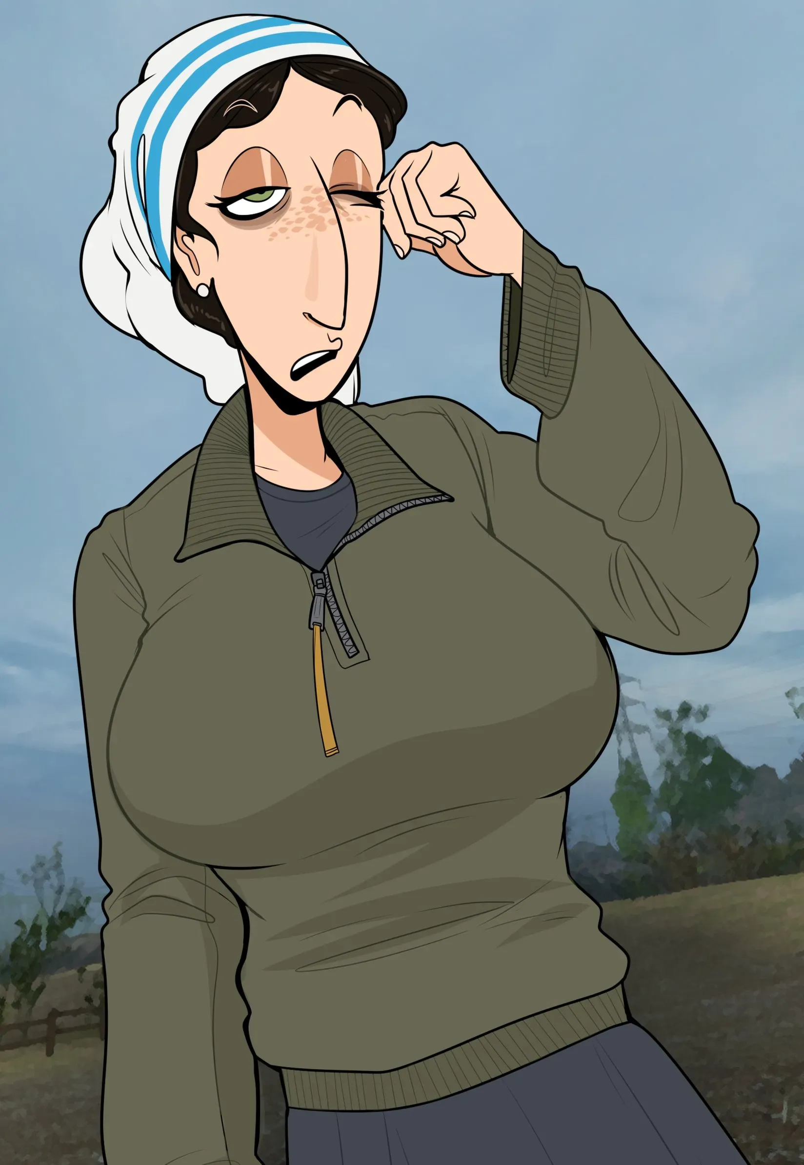 She took a step closer, her boots sinking slightly into the damp earth. Up close, you could see the dark circles under her eyes, the way her shoulders sagged with fatigue. But there was something tender in her gaze.