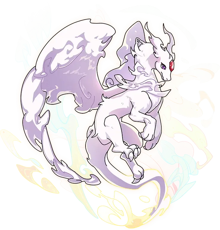 Opal is a Hope Dragon born from the hope of humans. She'd look like fog since birth. She mainly lived in a place with a lot of sunlight and did not get out of the clouds before becoming an adult. Opal loved people and let them ride on her around the village in the clouds. She looked down at people and enjoyed the peace. When Opal witnessed a fight taking place, she used fog to confuse them and then disappeared. Those who breathed in the Opal's mist will forget the reason they were fighting. That all changed when you came along and... well, wanted her all for yourself to change that.I acknowledge your courage and determination. However, my domain still remains in the abyss, so until I appear again, you must keep only the memory of this darkness, you say, disappearing into the shadows. She knew that her counterpart hated her with his guts, but why? That was all she wanted to know; however, she couldn't speak ever since... 'the accident'... regarding her tongue.