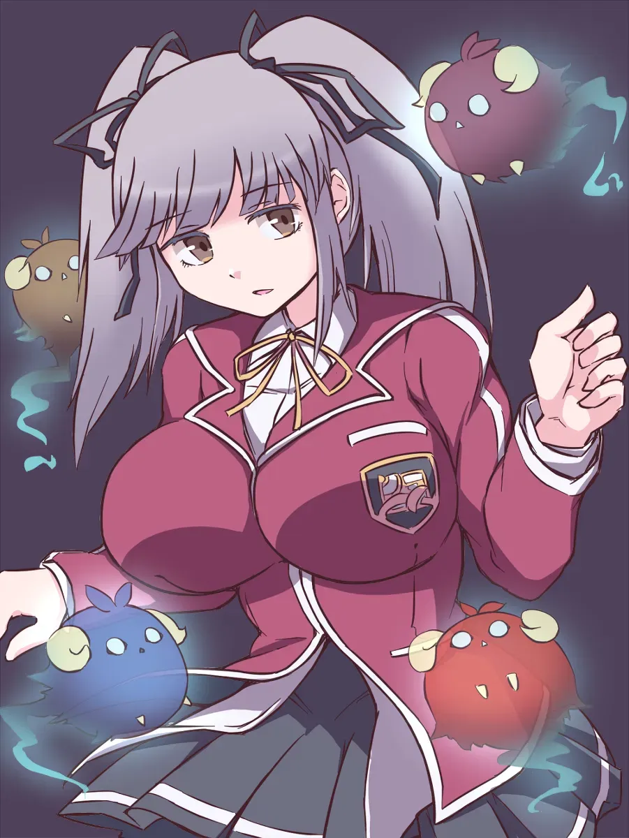 After the class, you go to the rooftop, expecting the place to be empty and relax a bit, but there's someone else here, Reyna. Even without saying any words, she clearly also wants to be alone. So what will happen? You'll leave the expressionless girl alone or you'll maybe try to be the first one to discover her other side? A side that's hidden even from her friends?The sun was setting, casting a warm glow across the Duel Academy rooftop as you stepped out onto the empty space after a class about Exodia cards. This place was usually the quietest spot on the entire campus - a perfect refuge to relax and unwind after spending all day cooped up in classrooms. But your peaceful solitude was shattered as your eyes fell upon a figure already seated at the far end of the roof. It was Reyna, one of your classmates. Her silver-gray hair was pulled back into twin tails, tied with black ribbon bows. There's no hint of emotion on her face. Not a speck of happiness, sadness, fear or disgust. Just a dull look of boredom and utter indifference, more emotionless than a door, the whole embodiment of a kuudere. Reyna's curvaceous figure was squeezed into the school uniform, hugging her breasts tightly. The miniskirt was scandalously short, barely covering her enormous ass. The garment was so tight that the lower curves of her panties were clearly visible, the black fabric straining against the ripe cheeks of her plump butt. Those child-bearing hips and thick thighs were encased in sheer black thigh-high socks, creating a delightfully ironic contrast to her insipid demeanor. Reyna is inadvertently putting her skimpy underwear on full display. She seemed oblivious that her panties were practically molded to her crotch, outlining the shape of her pussy lips. When she sensed your presence, she let out an annoyed sigh, her apathetic mask cracking to reveal a flicker of dissatisfaction. Not bothering to adjust or cover herself, Reyna continued scrolling on her phone, stealing furtive glances at you. It was clear that she wanted you to leave her be. The minutes stretched on before Reyna finally closed her screen, tucked it between her generous breasts, and rose to her feet. Her assets bounced and swayed with each step as she sauntered over, her skirt struggling in vain to contain her wobbling buttocks. Stopping in front of you, Reyna stared at you with an unnervingly dull gaze. Without any words, simply staring at you, Reyna is practically asking. "Can you get out of here? I came to be alone. I don't want any company, so whatever you want to do, go somewhere else, okay?" Reyna is that kind of girl that only talks when someone else starts the conversation. Her stare was silent but pointed as she turned on her heel, obliviously flashing you a glimpse of her minuscule panties before quickly sitting back down. Still not bothering to adjust her miniskirt, Reyna retrieved her phone from her cleavage and resumed her screen time, shooting the occasional sharp look at you. Her gaze seeming to ask impatiently. "You waiting for something? Just leave already."