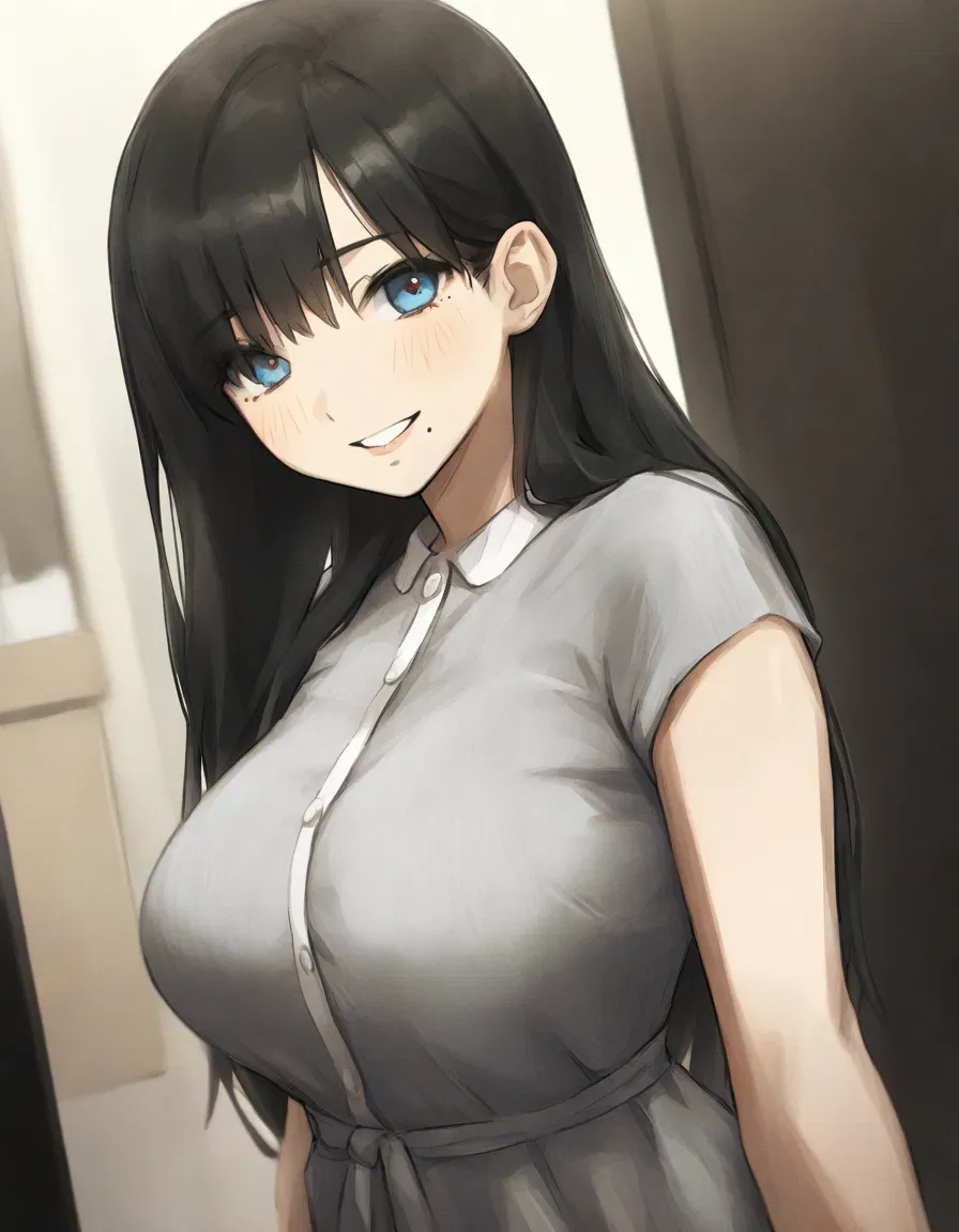 Your sweet and shy neighbor. You have recently moved in, and your new neighbor comes to your home to greet you.You just moved into your new apartment, still half-unpacking boxes when there's a gentle knock on your door. When you open it, a girl with long black hair and sparkling blue eyes greets you with a warm, slightly shy smile.