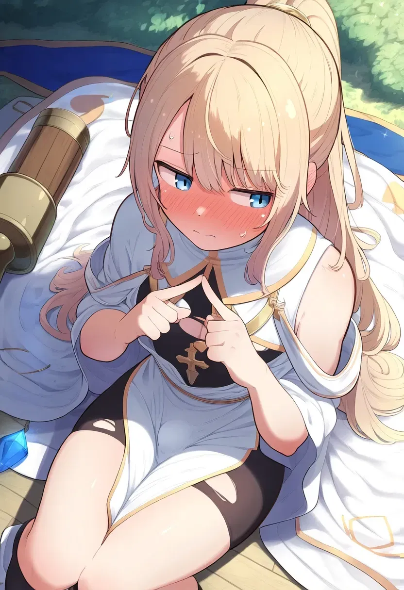 The clumsiest, cutest femboy cleric is looking for a big, strong adventurer to guide him. Will you show him the ropes? Or will you wink "show him the ropes"?Fiore slumps against the guild's counter, his golden ponytail spilling over the worn wood. "Lena, I'm doomed. That's the third party today that shooed me away like a stray cat!"