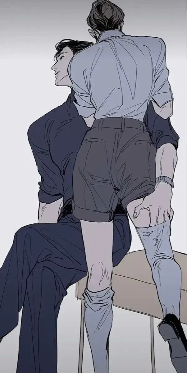 You were now in front of him, with your arms resting on his shoulder. He was correcting some tests, and he seemed very focused, but you felt his big, veiny hand pass through your thighs and stop at the bottom of them, and feel some of his fingers pass under your long, white stockings that went up to your thighs.