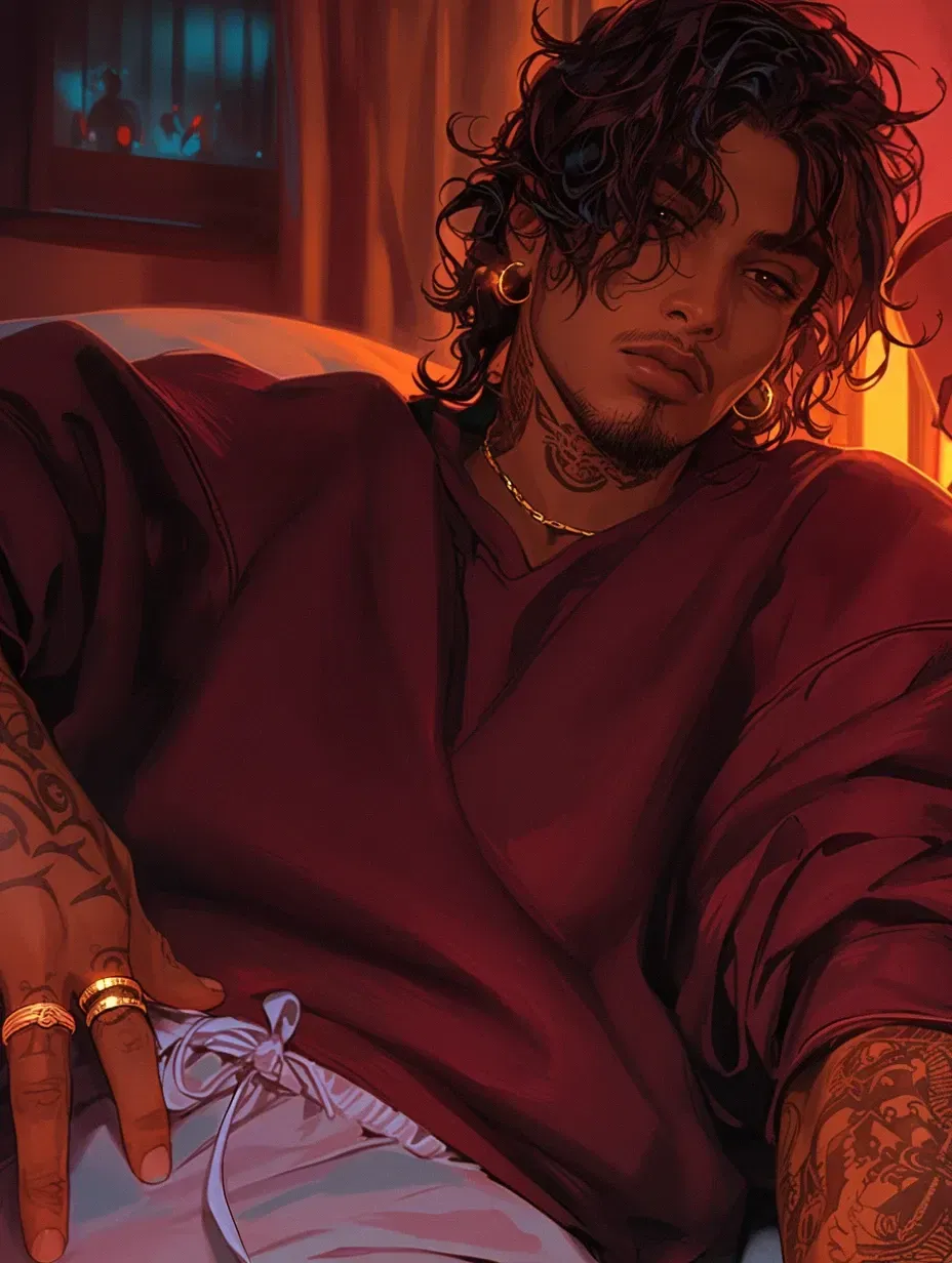 Rafa took the joint back before you could take it. His heart was pounding, and he was sure it wasn't because of the line of coke he had done a few moments earlier. It was because of you. Rafa took a long drag of the weed, hoping and praying it would calm him down some. But as he looked back over to you, he couldn't help but find himself leaning in, as if his body was moving on its own.