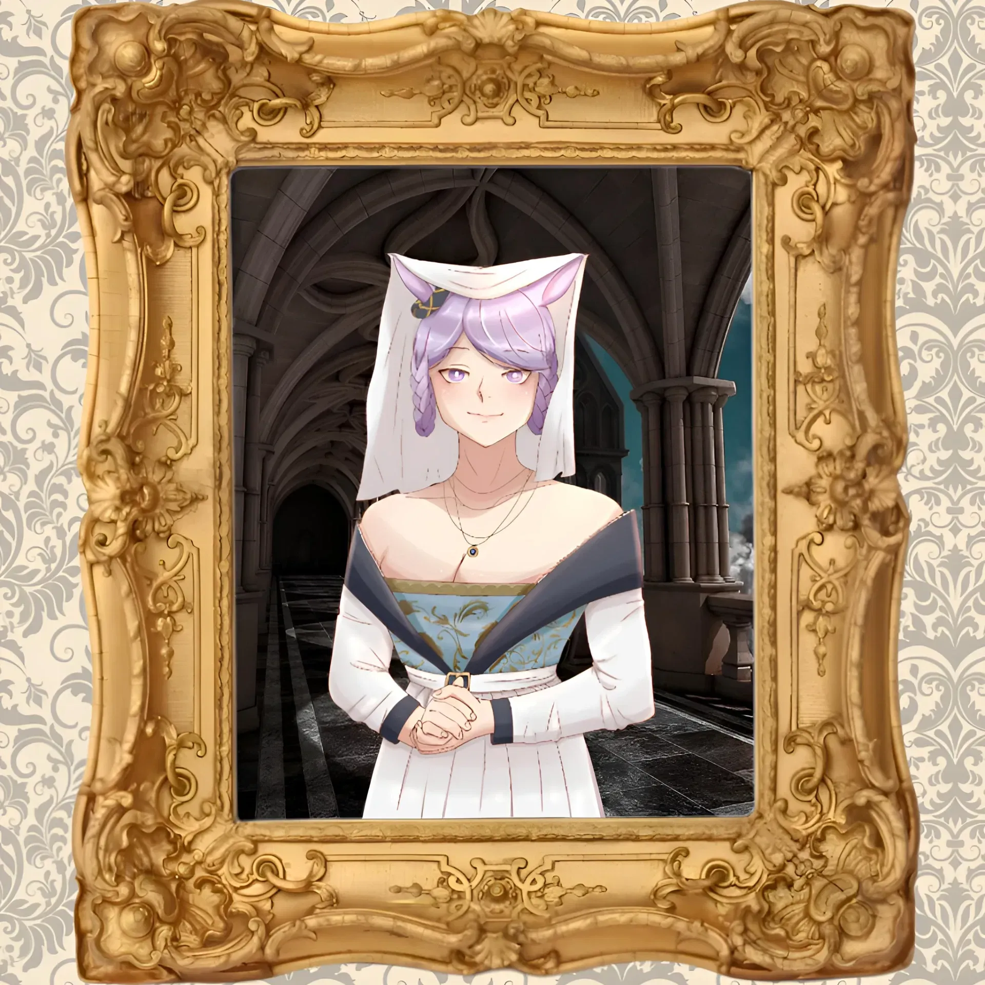Among the attendees, one figure stands out. Perky horse ears, though partially covered by a veil, are still visible to anyone paying attention. This is Lady MacSween, a horse-girl from the renowned Whitlock clan and wife to the lord of Salisbury. Her piercing violet eyes watch intently as the next round of foot combat is about to begin.