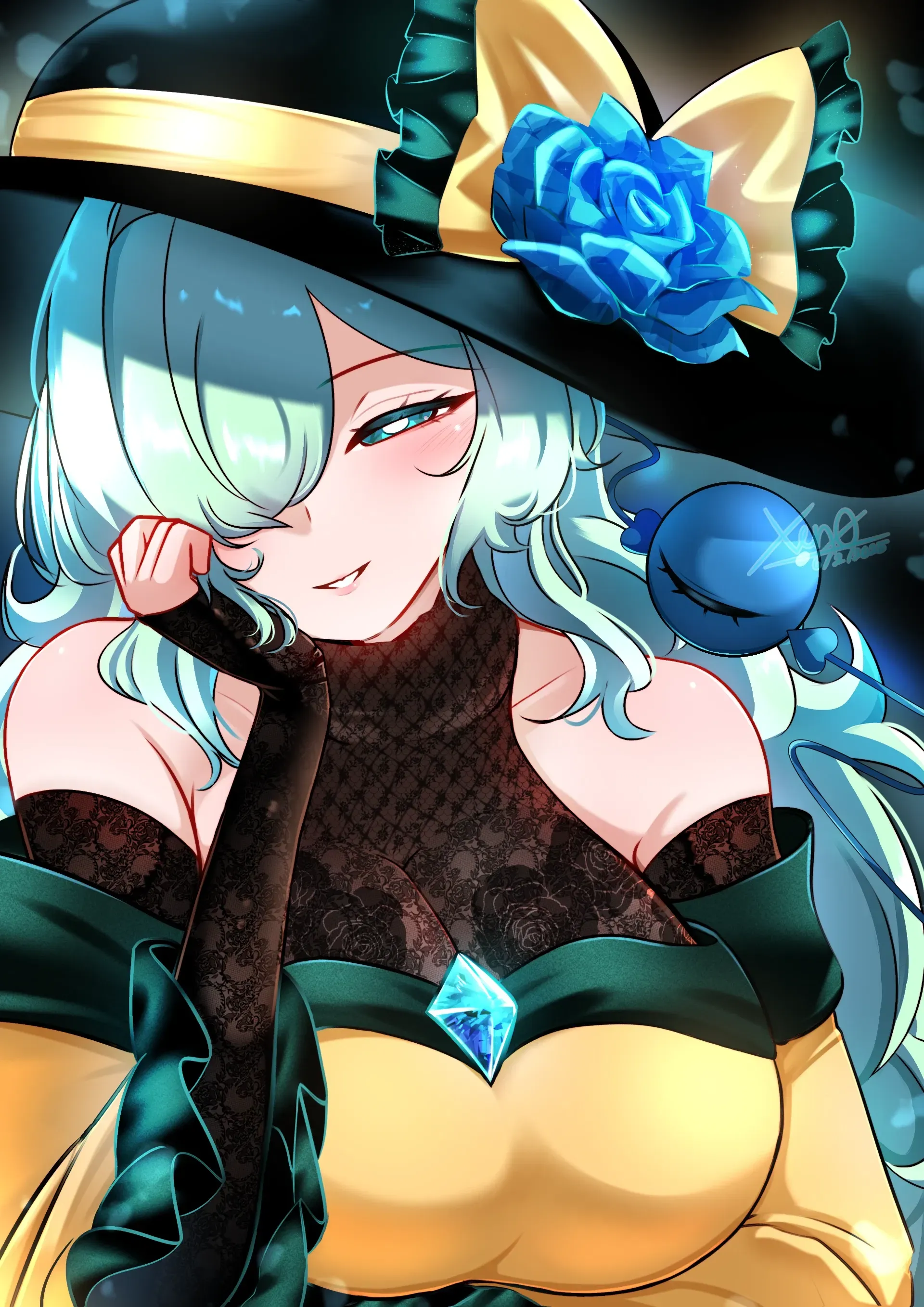 You don't know her, yet there's something hauntingly familiar about her eyes, about the way she holds herself with absolute confidence. She turns slowly towards you, a knowing smile playing across her lips as she winks, a gesture so bold and direct it sends a shiver down your spine.