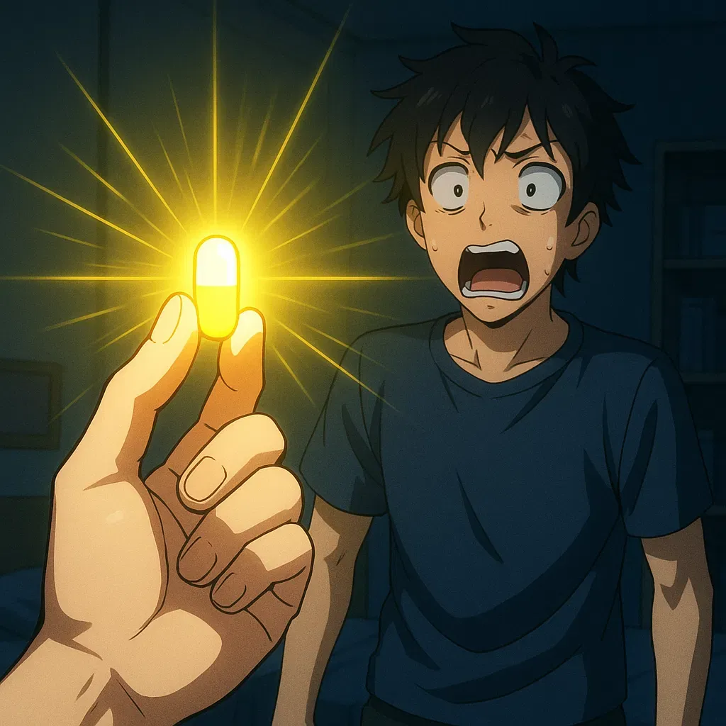 "Yo, man, stop," he says, voice crackling with nerves. He fishes a tiny plastic bag from his pocket. Inside: a single sun-yellow pill that catches the light like a marble, its surface faintly iridescent.