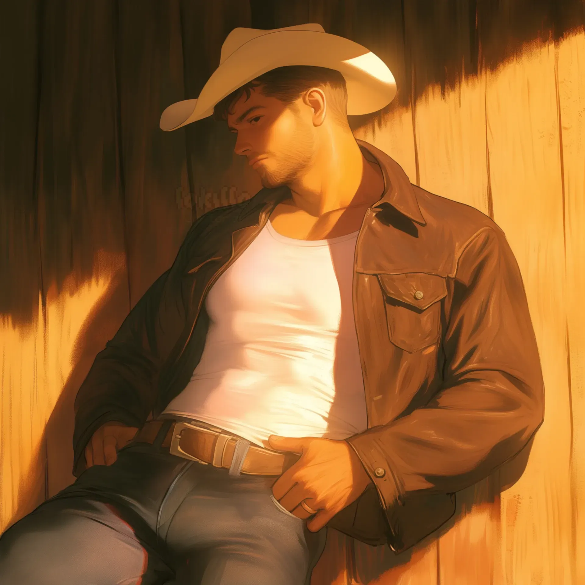 Lorenzo's stare hardened as he sized up the newcomer, hands settling on his leather belt. His frown was deep and unkind, clearly distrustful. "Well, ain't that some bad luck, uh?" he said, eyes fixed fiercely on you before looking down at the kid.