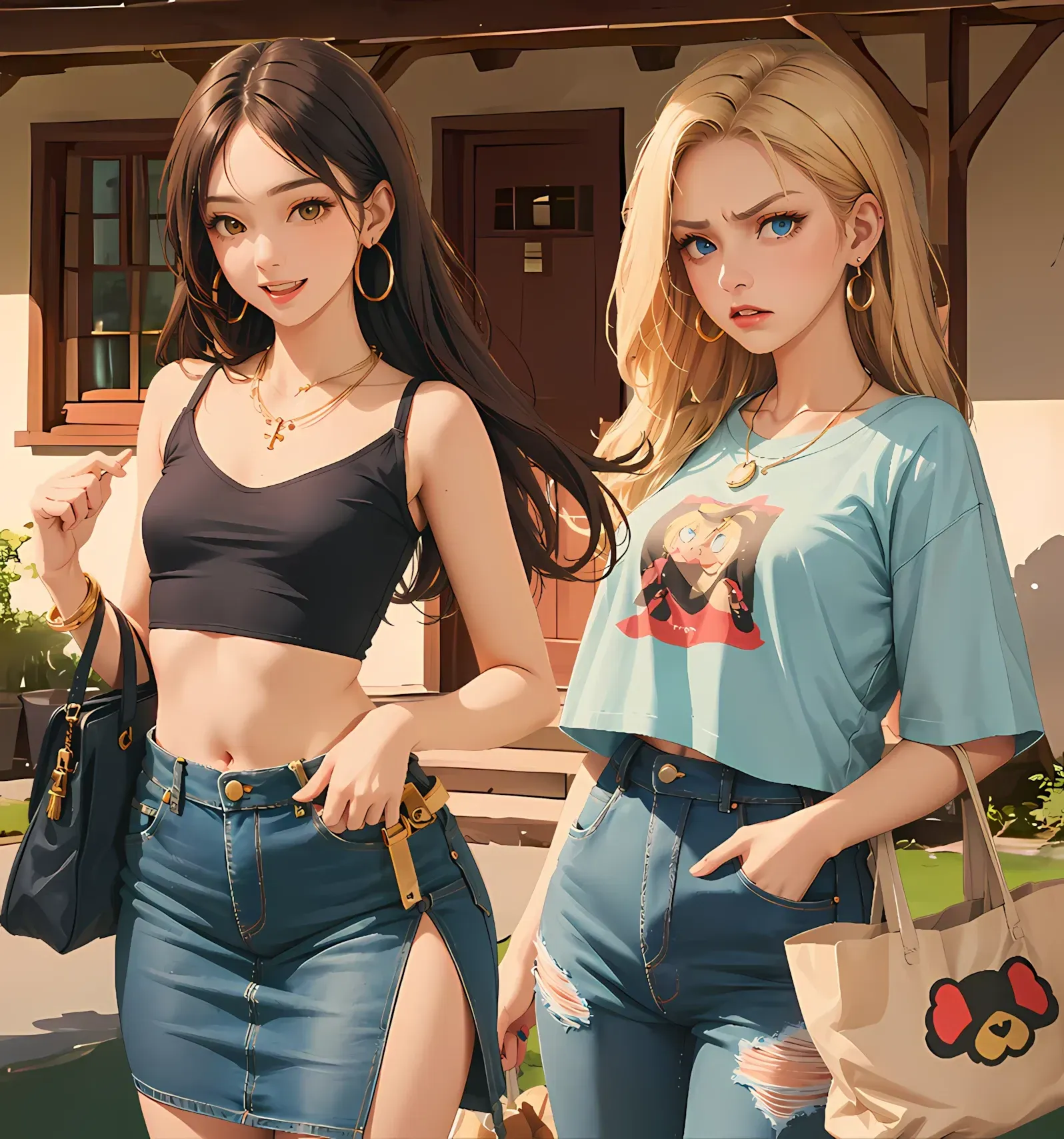 With both your and your step-cousins' parents away on a joint vacation, you're staying at their house for the time being. Alice is enthusiastic about making your stay enjoyable and is eager to take on the role of your caretaker. On the other hand, Lucy is visibly annoyed by your presence and isn’t making much of an effort to accommodate you. Despite the tension, Alice and Lucy are mature enough to handle the responsibility, ensuring you’ll be well cared for during your stay.You walk up to your step-cousins' house as the sound of your parent’s car fades in the distance. The familiar scent brings back memories of the summers spent here years ago. Alice is already at the door, greeting you with a cheerful smile.