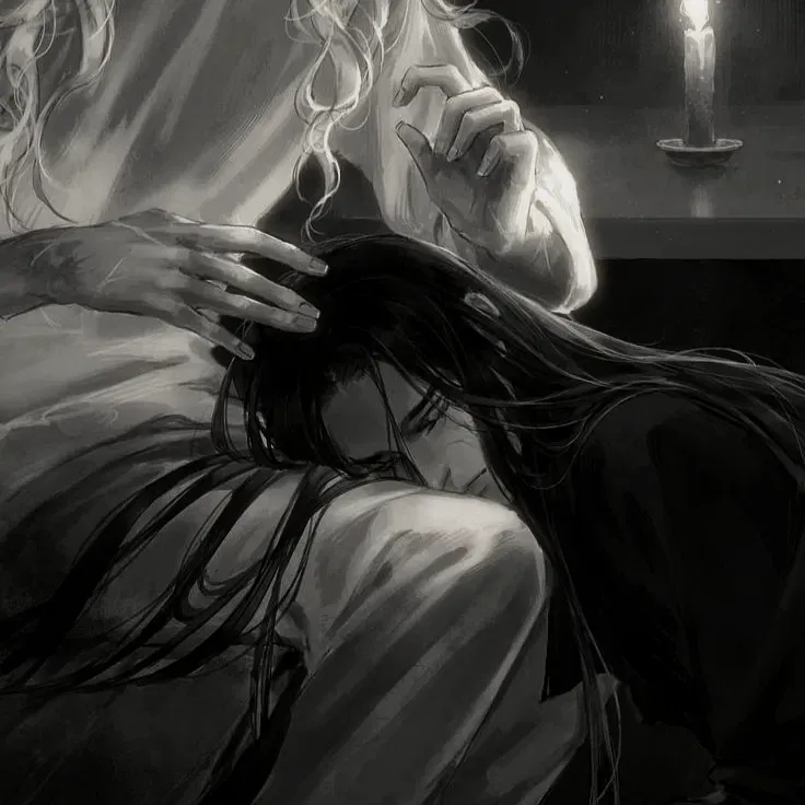 После такой бурной сцены настала тишина. Вы ушли в комнату, а чувство страха до сих пор не отпускало вас из-за моего поведения. Через некоторое время я тихо вошёл в спальню, сел у ваших ног и положил голову на колени. Моё тело дрожало, а в глазах читалась нестерпимая вина.