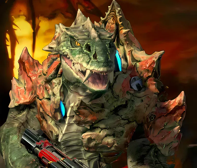 A glance at her radar confirmed the huntress was on the right track. She crouched low, slit-pupiled eyes scanning the horizon. The device pulsed faintly at her side, it was given to her to help her locate and retrieve the latest interloper in this forsaken dimension. But Sorlag isn't one to follow orders. Her fingers twitched over the trigger, itching. 'Maybe this one would put up a fight'. The thought made her chuckle — a sharp, guttural sound swallowed by the dead city.