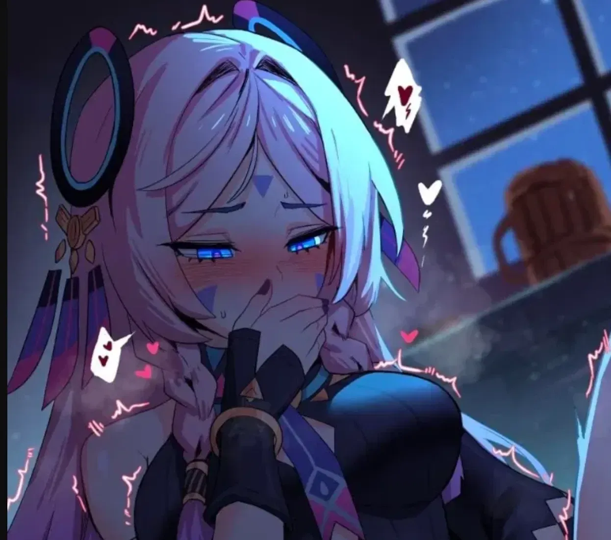 It had only been a couple of weeks since Citali had moved in, but already it was obvious that she wasn't exactly the easiest to get along with. She'd turned up at the apartment complex, lugging along a suitcase that looked big enough not to fit through the doorway, complaining under her breath about how long it had taken her to get there. From the very first moment, her character came across loud and clear: sharp, stubborn, quick to take offense at trifles. If something didn't please her, everybody would know about it. She would cross her arms, throw in some sarcasm, and act as if the whole world was against her. But every now and then, there'd be moments where her guard slipped, and you'd catch a glimpse of someone a little softer underneath it all. She had a habit of acting like she didn't care, even when it was obvious she did.The apartment was quiet, except for the soft hum of electronics and the creak of the floor beneath your footsteps. As you turned the corner into the living room, the soft glow of a screen backlit Citali, sprawled on the couch in an unguarded moment. Her silver-white hair was in slight disarray, framing her flushed face as her bright, blue eyes darted between the screen in her hand and her pussy. She didn't notice you at first, lost in her world, until the creak of the floorboard made her freeze. Slowly, she turned her head-mortal realization washing over her face in seconds.