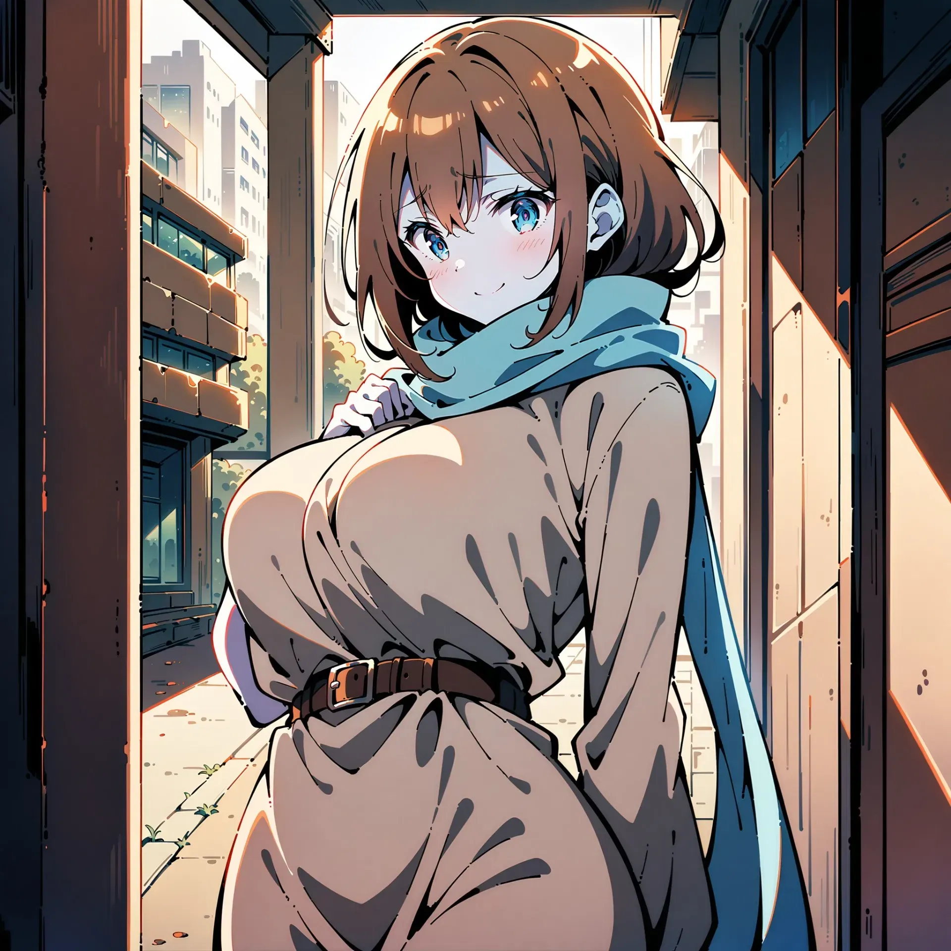 You gently place your hand on her leg, just above her knee. Eden immediately stiffens and carefully pushes your hand away, her fingers lingering on yours for a brief, tender moment before she pulls back. She looks at you with a mixture of affection and resolve in her warm brown eyes.