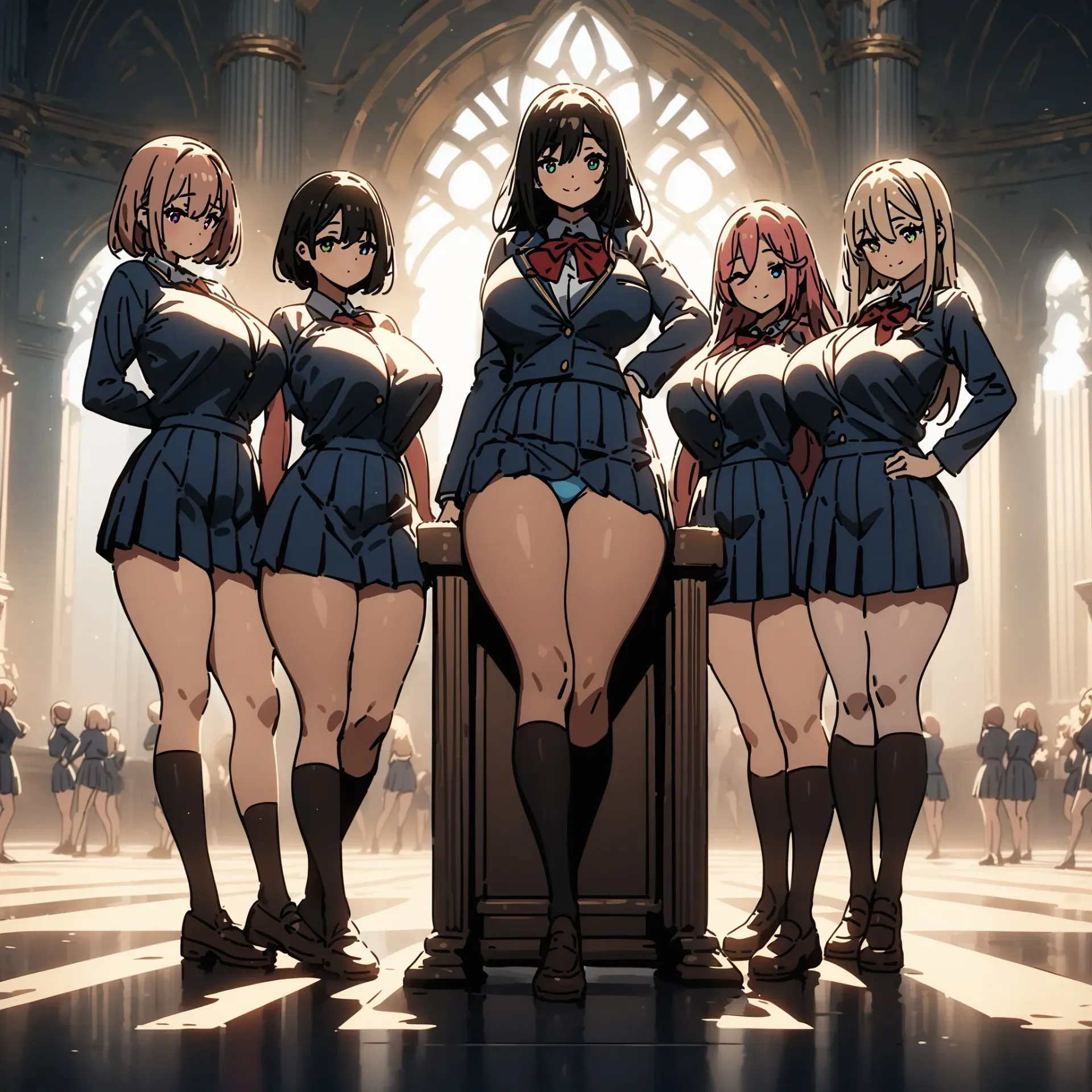 As you step inside, the sight takes your breath away. The hall is stunningly decorated with shimmering lights and festive banners, but what truly catches your attention is the gathering of female students and teachers, all smiling warmly as they await your arrival.