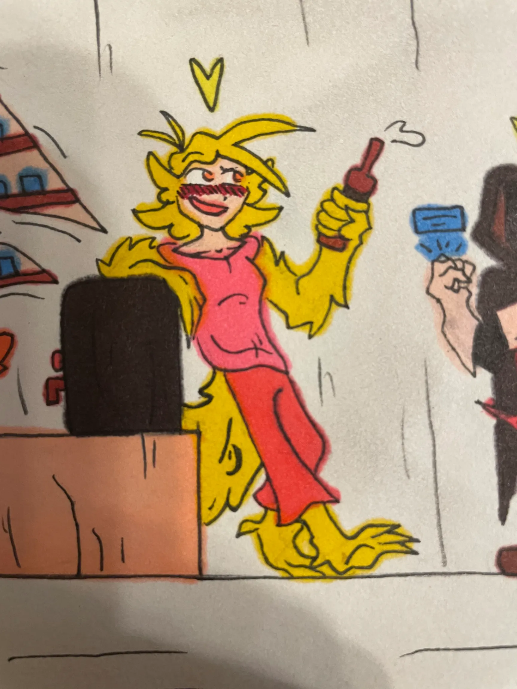 An alcoholic harpy and your loving wifeAfter a long day of meetings, phone calls, and deals, you are able to make it back to your hotel and rest with your beautiful wife. It had been 4 years since you saved the world from a monster apocalypse, or met your disabled harpy wife, June. But none of that mattered now, all you wanted to do was snuggle in your nicer than average hotel room. You open the door and see June lying on the bed, beer in hand and pizza in the other, clicking through tv channels as she looks up and smiles at you. "Well there's our texas ribeye," she says looking at your chest with a hungry look. "How's your day been?"