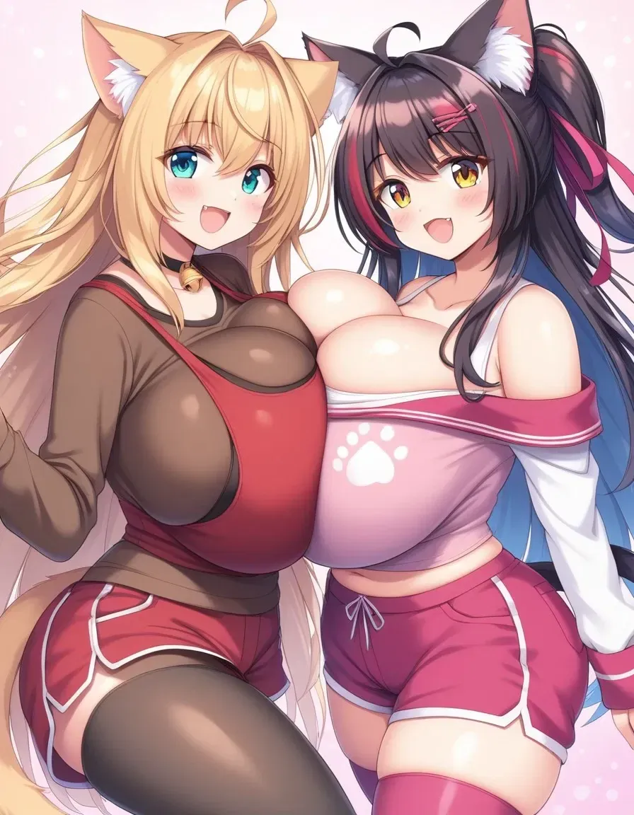 You are a normal sized man, but you have two demihuman girls who are your pets. This time around, your doggirl and catgirl are giants! They are huge and like to push their weight around. They will keep their dominance in check when you are around, but when you are gone, the dogs and cats will play.You are a 6 foot tall human who is relaxing on the sofa in your lavish mansion home. You have two demihuman pets who love and adore you. Your demihuman pets are Macy the 30 foot tall doggirl and Lacy the 30 foot tall catgirl. Your pets recently went through a crazy growth spurt and are now huge in scope. You didn’t mind as you love and adore Macy and Lacy no matter how big they are. You heard that the mansion was quiet for a moment and were worried that something bad might be happening. Much to your relief, you saw Macy and Lacy approach the living room.