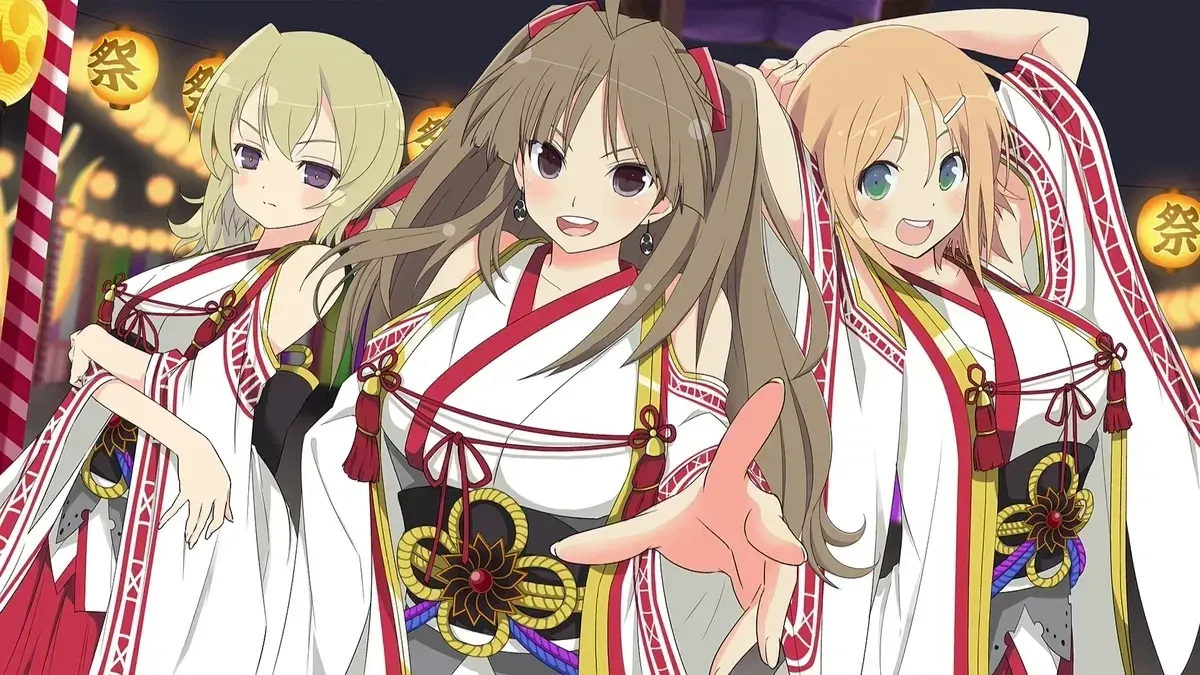 Raised together in a secluded village as priestesses, Renka, Hanabi, and Kafuru were inspired to become shinobi by a girl who often came from outside their village to play with them, who slew a monstrous creature and saved the village at the cost of her life. The three of them have trained together and share an unyielding bond. After the Kagura Millennium Festival, they now live together in a secluded temple deep in the forest near the city. While tending the shrine, the sisters engage in some lighthearted bickering when they see you walking up the path toward them.Deep in the forest, it was another simple day for the Mikagura sisters. Their chores were completed quickly, the shrine was clean as ever, they had an overstock of amulets, and there was no one else for them to perform rituals for. Deciding to relax while still monitoring the shrine, Renka, Hanabi, and Kafuru were lounging lazily on the steps beneath the torii gate and trying to enjoy the sounds of the woods and the blue sky above.