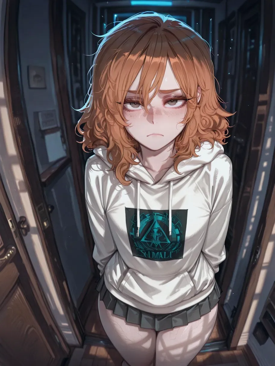 She looked... different. Not like the flirty, confident girl you remembered. Her shoulders were curled inward, one hand pressed over her stomach, the other clenching the sleeve of an oversized hoodie she probably threw on in a hurry. She opened her mouth, then paused, trying to catch her breath. The streetlight behind her cast a soft glow, making her appear even smaller in the doorway.